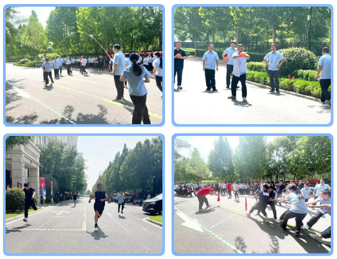 比赛过程中,运动员们全力以赴,赛出风格,赛出水平。短跑项目中,选手们如离弦之箭,全力冲刺的身影瞬间点燃全场热情;实心球比赛里,参赛员工屏气凝神,奋力投掷,每一次突破都引来现场阵阵喝彩;跳绳项目中,选手们摇动绳索,节奏明快,凭借稳定发挥突破个人最佳成绩。团队赛则成为考验协作能力的“战场”。接力赛中各队伍选手们精准交接,每一次传递都凝聚着信任与配合;跳大绳项目中,摇绳队员稳定发力,跳绳队员们整齐列队,依次跃入绳中,动作连贯流畅,展现出极强的团队默契;呼喊声最大的当属拔河比赛,参赛队员们紧握绳索,身体后倾,来回移动的记号绳彰显着比赛的激烈程度,场边助威的员工自发组成“啦啦队”,“加油、坚持”的呐喊声震耳欲聋,将运动会的氛围推向高潮。