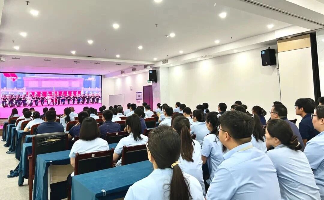 上午9时许,阅兵仪式直播正式开始,集团全体员工统一着装,党员佩戴党徽,大家精神饱满,以庄重姿态迎接这一特殊时刻。随着激昂的乐曲响起,当受阅方队迈着整齐铿锵的步伐通过检阅台,当国产现役主战装备、新域新质作战力量依次亮相,屏幕前的员工无不心潮澎湃,不时发出阵阵赞叹,深深为祖国的强大国防实力与军队现代化建设成就感到自豪。直播过程中,全体人员始终保持专注,认真聆听习近平主席的重要讲话以及现场解说中关于受阅部队和装备的阐释。80年前,中国人民以14年浴血奋战铸就民族丰碑,用3500多万同胞的牺牲换来了民族独立与世界和平;80年后的今天,庄重盛大的纪念活动不仅是对历史的致敬,更是对伟大抗战精神的传承延续。