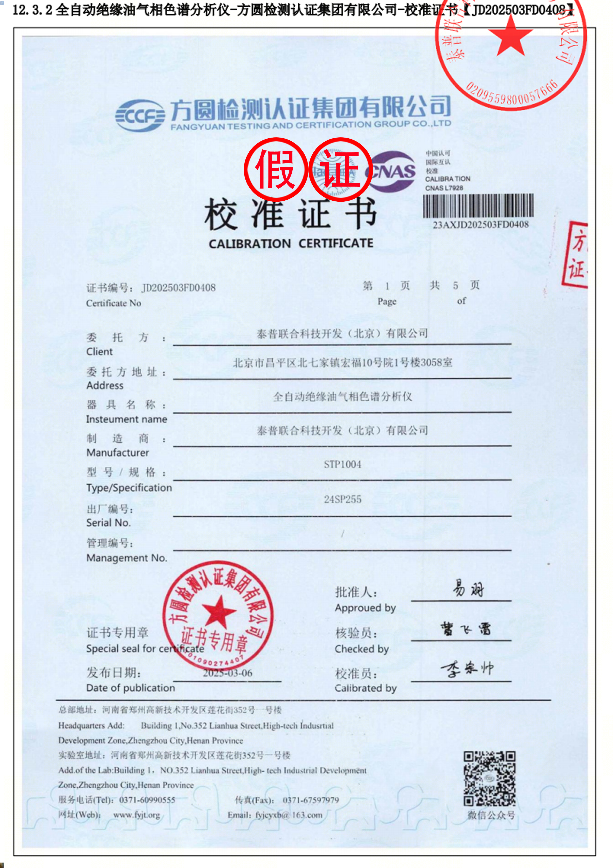 发现一批虚假校准证书,请以下公司注意:针对冒用我司名义或使用我司商标出具虚假校准证书的违法行为,我们表示强烈的谴责,并予以公示。我公司保留追究违法行为人法律责任的权利。
