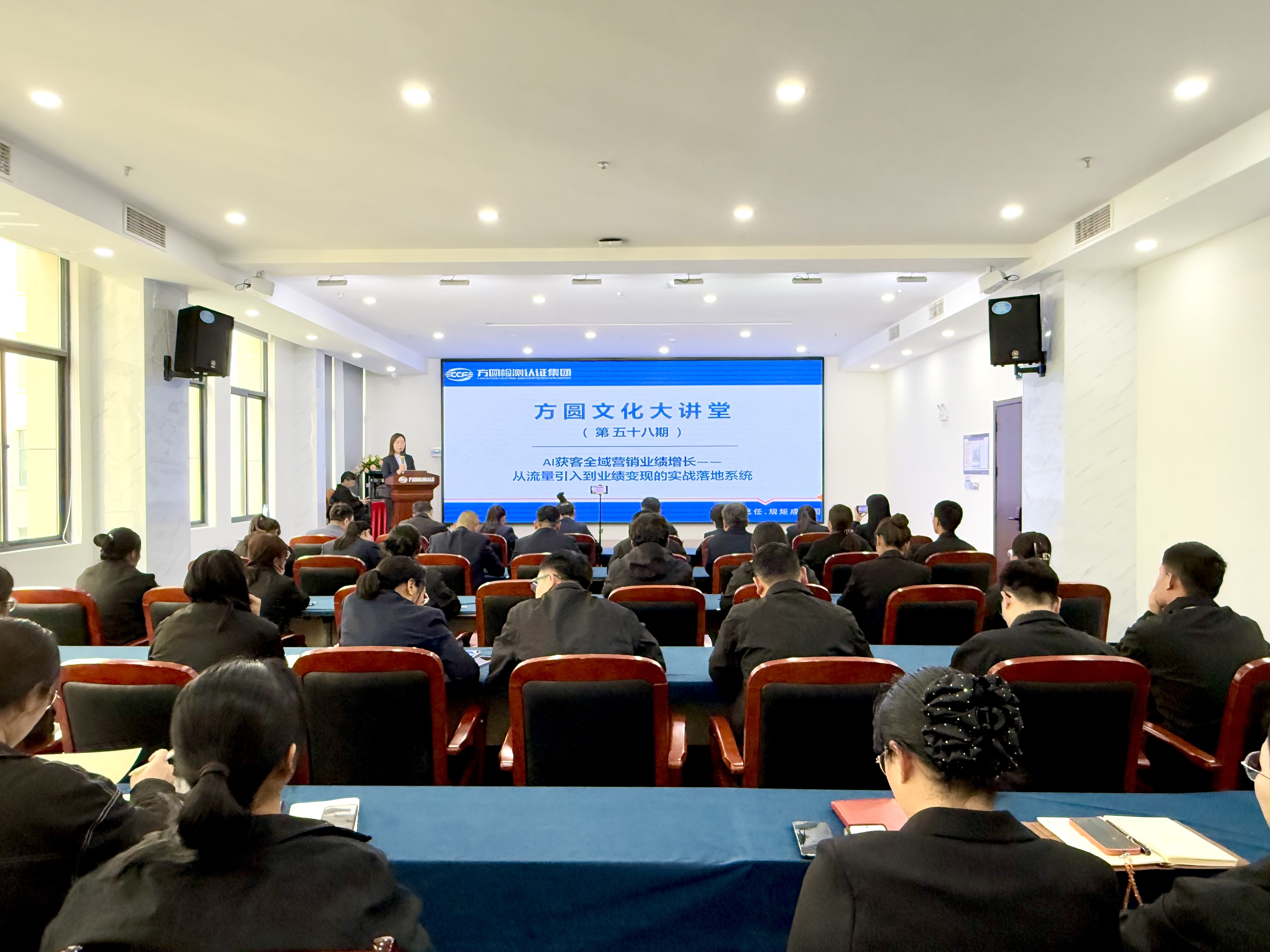 在数字化浪潮席卷全球的当下,人工智能技术正深刻重塑各行业营销模式,从内容生成、用户触达到客户转化,AI已成为推动业绩增长的关键驱动力。为破解营销获客痛点,提升员工数字化营销能力,3月31日,方圆检测认证集团顺利开展第五十八期文化大讲堂,以“AI获客全域营销业绩增长——从流量引入到业绩变现的实战落地系统”为主题,特邀互联网资深营销专家开展专题讲座,聚焦人工智能在营销领域的创新应用,为集团业务高质量发展注入新活力。
