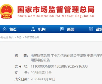 11月20日,市场监管总局、工业和信息化部联合发布关于调整电器电子产品有害物质限制使用合格评定制度限量要求与检测方法适用标准的公告。详情如下:市场监管总局 工业和信息化...