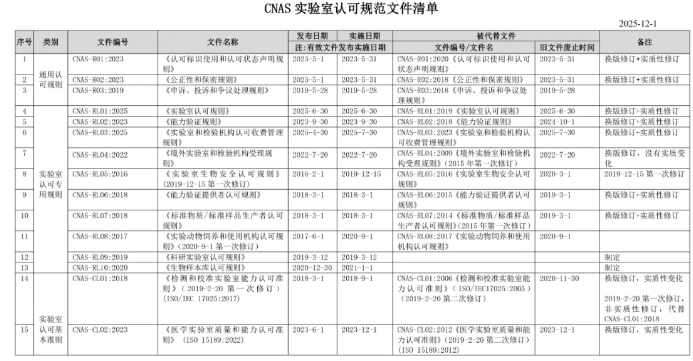 近日,中国合格评定国家认可委员会(CNAS)发布最新CNAS实验室认可规范文件清单,共包含127个文件。CNAS实验室认可规范文件清单...