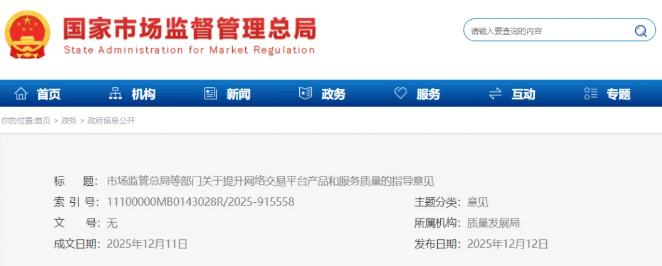 近日,市场监管总局联合中央网信办、工业和信息化部等部门印发《关于提升网络交易平台产品和服务质量的指导意见》(以下简称“指导意见”)。指导意见提出,加强经营主体...