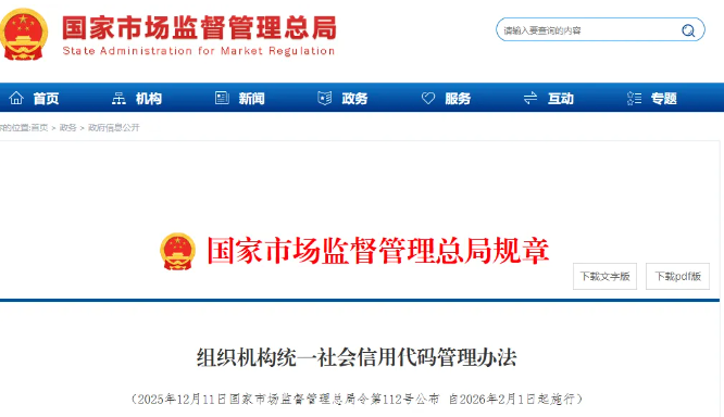 近日,市场监管总局发布《组织机构统一社会信用代码管理办法》。据介绍,统一社会信用代码,是每个组织机构全国唯一、终身不变的“数字身份证”。这一办法的核心是对统...