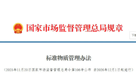 近日,市场监管总局出台《标准物质管理办法》(以下简称《办法》),将于2026年12月1日起正式施行。标准物质是化学、生物等检测活动中作为量值依据的“标尺”和“砝...