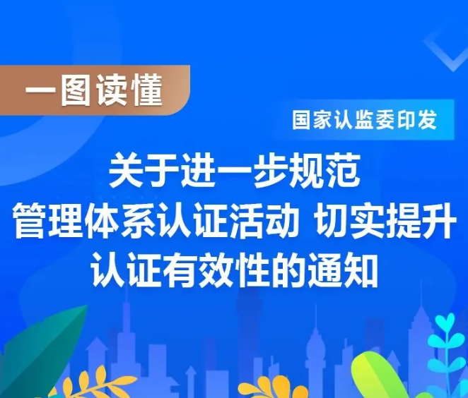 近日,国家认监委发布关于进一步规范管理体系认证活动 切实提升认证有效性的通知,要求严格落实认证机构主体责任、持续强化认证人员管理、切实提升管理体系运行有效性。...