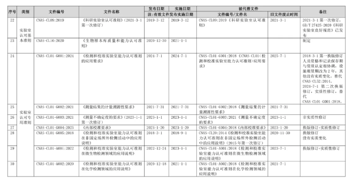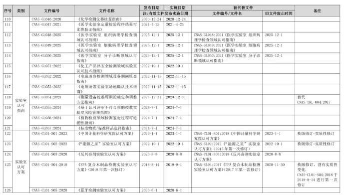 近日,中国合格评定国家认可委员会(CNAS)发布最新CNAS实验室认可规范文件清单,共包含127个文件。