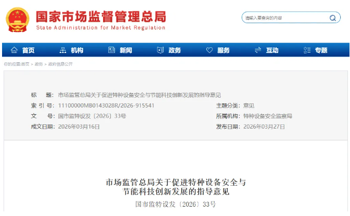 市场监管总局关于促进特种设备安全与节能科技创新发展的指导意见