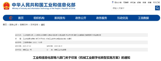 近日,工业和信息化部等八部门印发《机械工业数字化转型实施方案》,方案提出开展智能装备创新发展行动、智能制造扩面普及行动、智慧服务拓展提升行动、基础支撑强化夯实行动等...